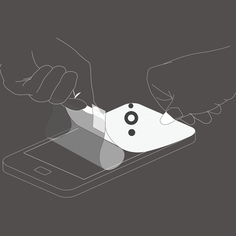 Printing marks on the top of the screen protector and showing the matching marks on the screen through application, the patented technology allows any customers to install their screen protector on the device without professional's assist or assisting tools.