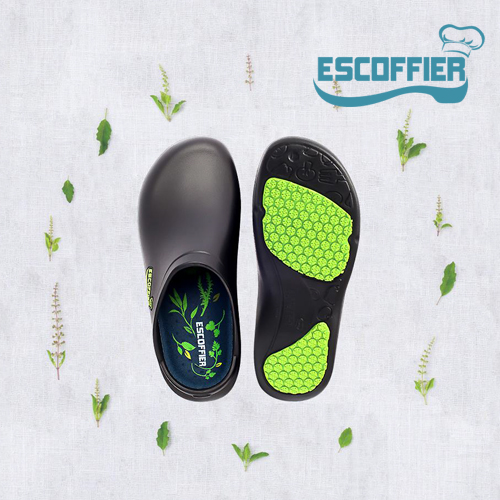 Escoffier first gave the name of chef shoes by obtaining patent on 'Functional shoes suitable for kitchen environment: chef shoes' and made ultralight chef shoes by introducing EVA material into chef shoes for the first time in South Korea etc., it has positioned as leading kitchen chef shoes in South Korea based on 13 years of know-how.